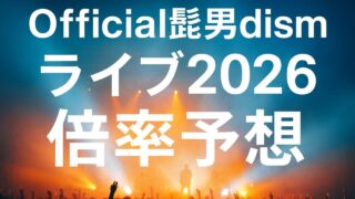 イベント関連 髭男!2026年全国ライブツアー倍率と申し込み方法まとめ! Official髭男dism2026年ライブ倍率予想ここでは、2026年のOfficial髭男dismライブツアーの倍率を予想していきます。会場の収容人数やファンクラブ会員数をもとに、全体・都市別の倍率を算出しました。◆総動員数(全公演合計... 2025.10.13 イベント関連